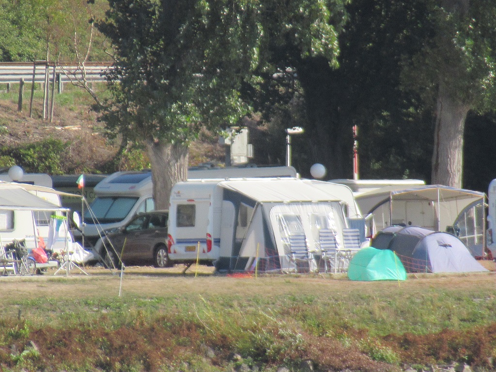 Daarna via de Rijn terug gelopen naar de camping. Zo ook op het begin van de camping binnen gelopen. Het is precies 1 km tot onze plaat en daarmee is de camping nog niet beëindigd. Denk dat het geheel zeker 1 1/2 km lang is.