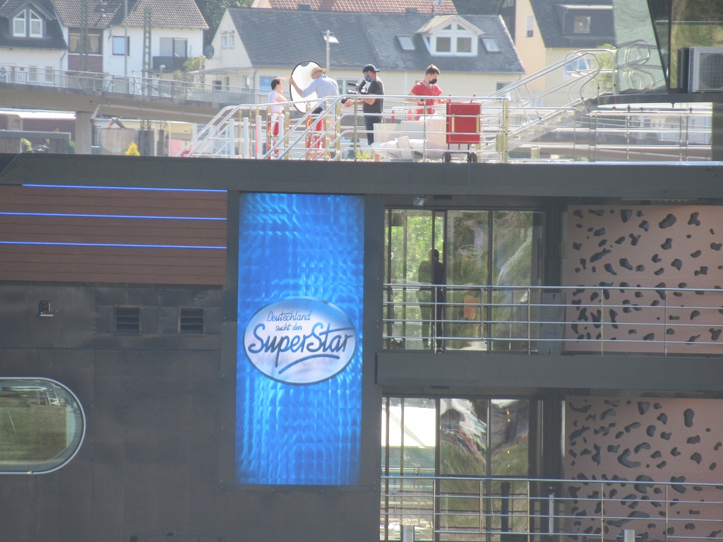 Bij de caravan aan gekomen zien we hoe Duitsland in deze tijd “Duitsland sucht den superstar” op neemt. Op een zeer luxe rijn cruiseboot. Zelfs 1 van de deelnemers vanaf onze plaats horen zingen. Denk niet dat ze het haalt.